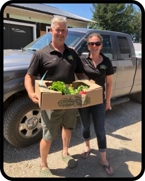 You sign up by email or phone. We get your information and you send payment ( cash, credit card, debit, cheque or e-transfer) for the whole amount of the year (18 x $28.00 plus delivery costs-$7.00 per week) or you may pick up your box from our store/market on Thursdays from 3:00pm - 7:00pm and pay no delivery cost. We can do a bi-weekly box too if agreed on before the season starts. There will be a one time administration fee of $10.00. This helps to cover the expense of organizing the boxes and filling the orders. As of now there is no cost for the box's use. We would appreciate it though if they are returned every week so they can be recycled.We will run our routes Wyoming/Petrolia/Corunna/Sarnia/Bright's Grove/Camlachie every Thursday from 3:00pm until finished. If you are not home leave your box from the week before in an agreed spot and we will leave your box of produce. If you are not home you can cancel your box but there are no refunds, it is still be paid for. You could find someone to take it instead(from your delivery spot) or we can donate it to a family in the community who needs it.You DO NOT even need to leave your home and fight traffic, find a parking spot and fight the crowds to get the freshest produce. Let us do it for you. This is perfect for busy working families or people who have a difficult time getting around. I also email you the list of items in the box and add recipes, nutritional facts or how to store your produce tips.